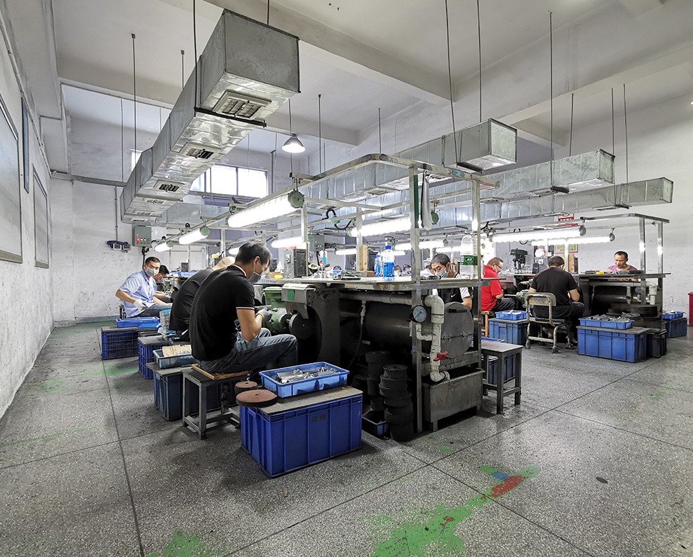 采用40位高端人工智能批鋒處理系統,無死角、純手工毛刺打磨處理系統,精雕細啄,結合紅外線檢驗設備,保證每一件產品無毛刺殘留。